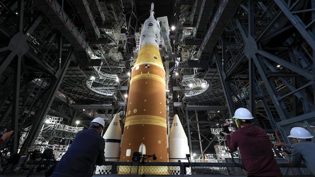 The core stage of the Space Launch System (SLS) rocket is covered in insulating foam to protect the cold fuel from the warm air. Despite efforts to contain the cryogenic fuel, pressure builds up, leading to leaks due to the ultra-cold temperatures and vapor pressure. Engineers are working to fix leaks at the launch pad to avoid delays and resources.